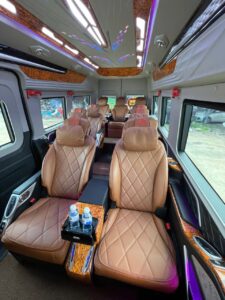 Xe Limousine đời mới, nội thất sang trọng, ghế rộng, có đèn đọc sách, sạc USB từng ghế.